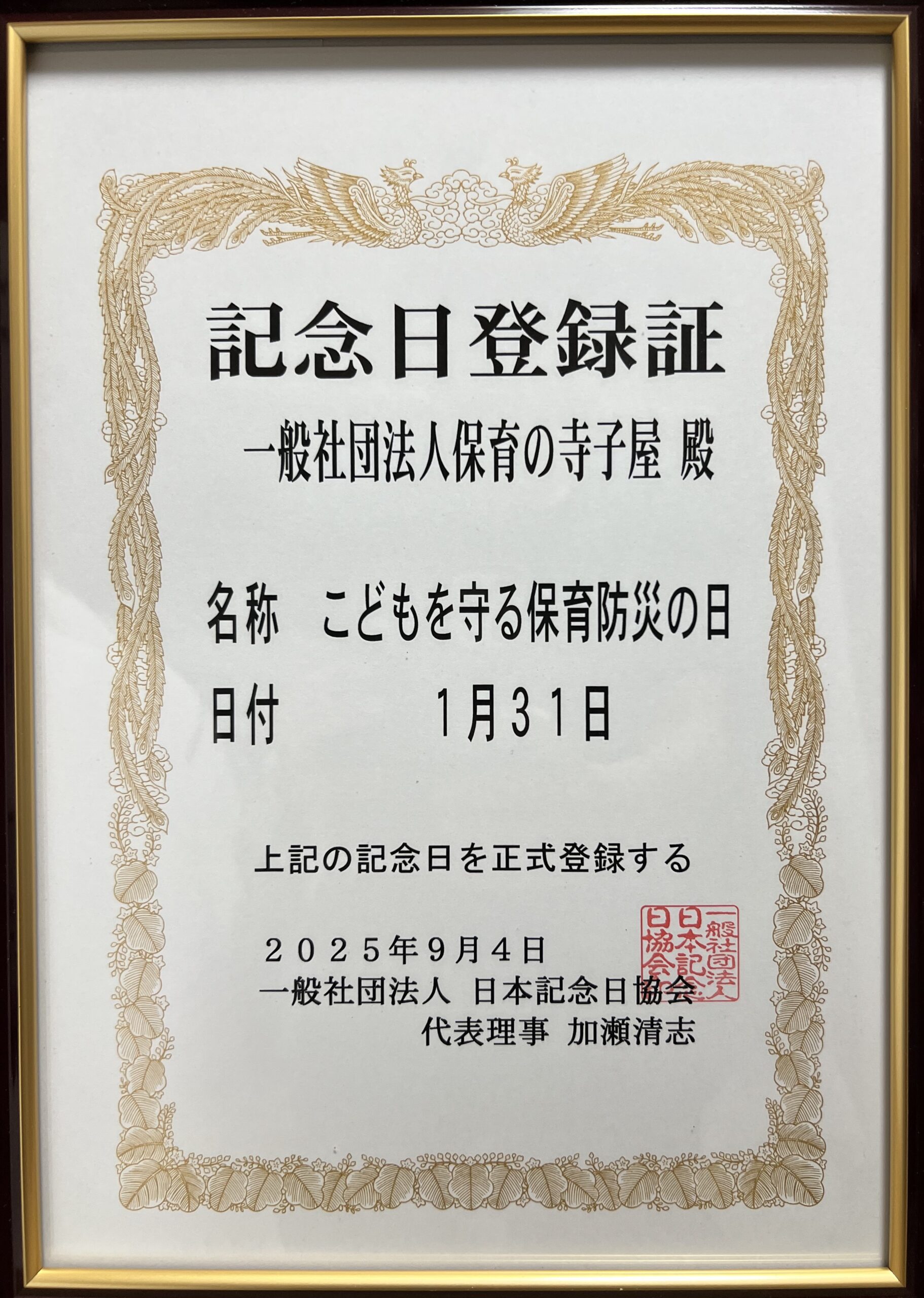 1月31日「こどもを守る保育防災の日」として制定しました。
